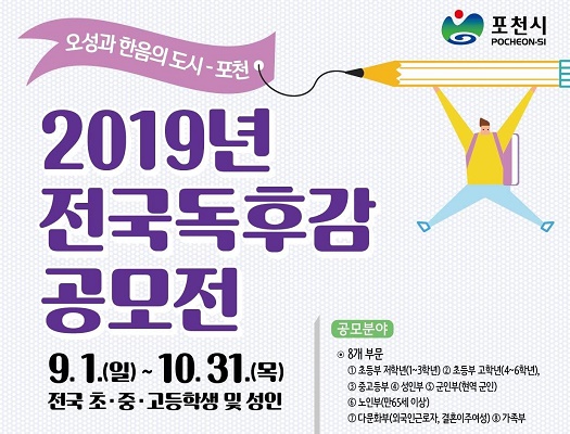 ‘오성과 한음의 도시 – 포천’ 2019년 전국 독후감 공모전을 개최합니다.