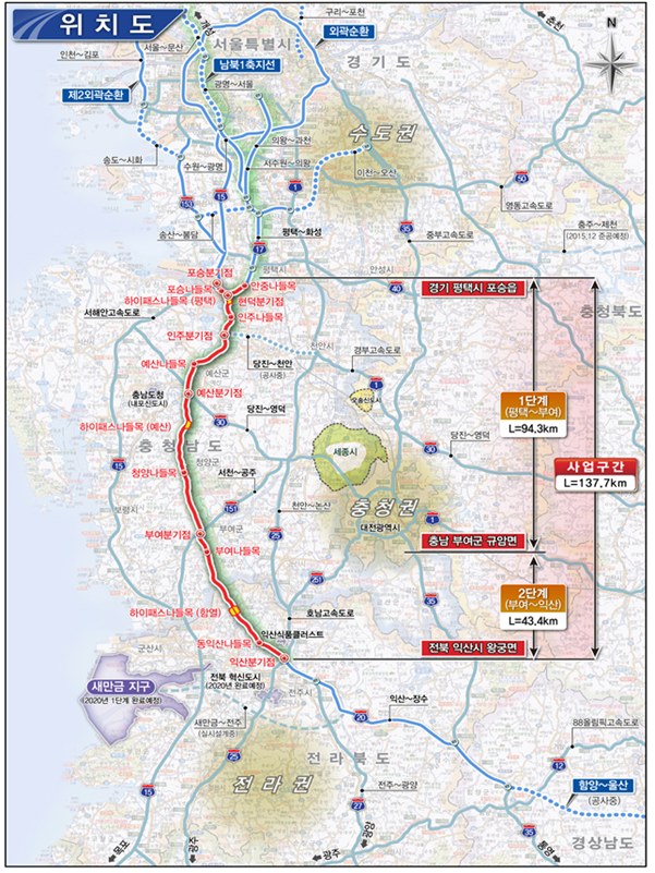 앞으로 파주 문산 ~ 고양 ~ 서울 ~ 광명 ~ 수원 ~ 평택 ~ 전북 익산을 연결해주는