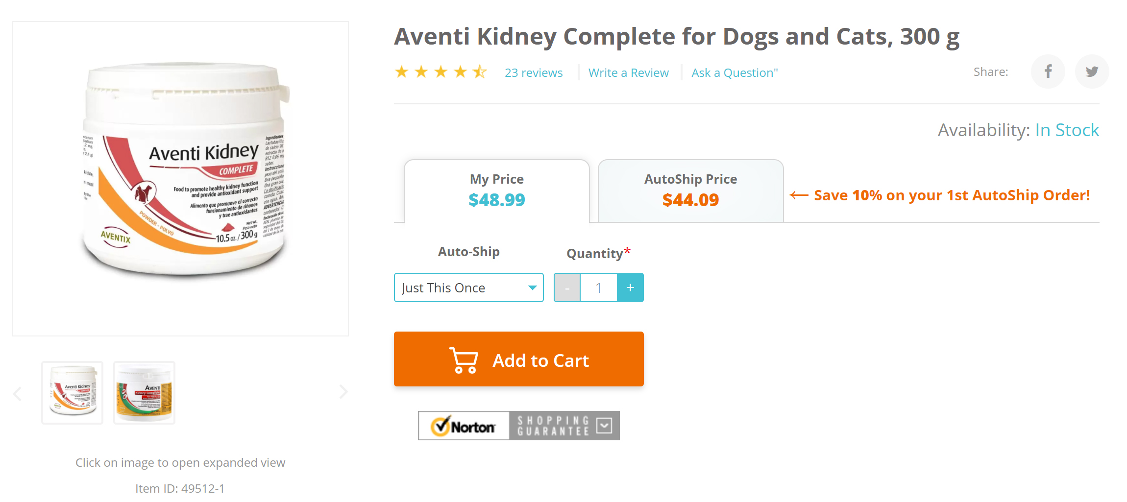 Aventi Kidney Comlete도 90g짜리랑 300g짜리 두 종류를 팔고 있어서